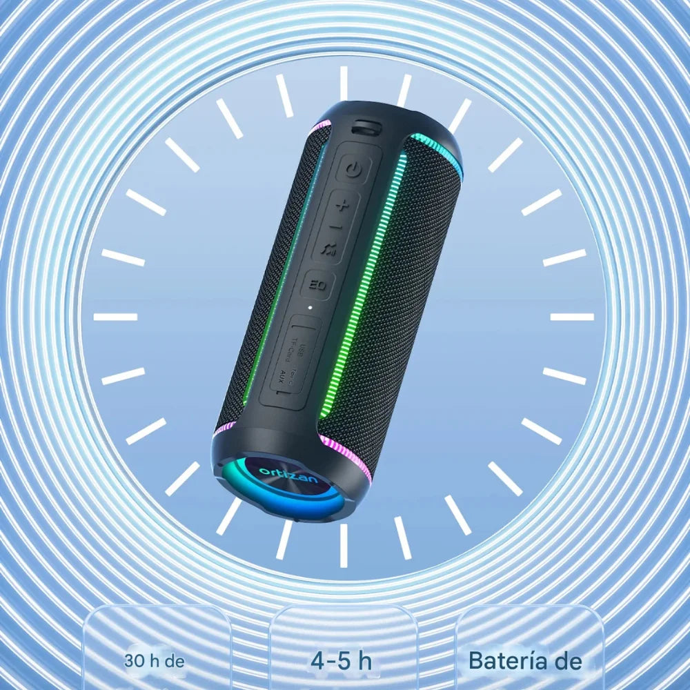 Su batería masiva de 24.000 mAh proporciona horas de reproducción continua, mientras el diseño impermeable garantiza uso seguro en interiores y exteriores.